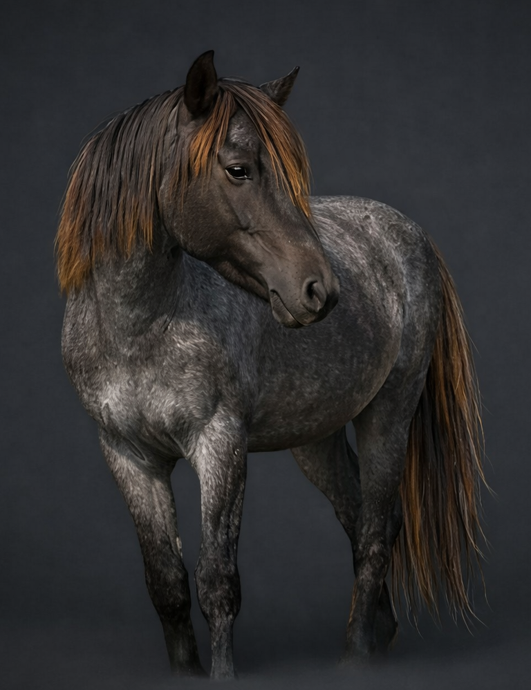 Sirius is a confirmed Smokey Blue Roan colt, genetically tested for color. With a 50/50 chance of passing on the roan gene and carrying one copy of the cream gene, he offers exceptional value to clients seeking to enhance color without compromising quality.